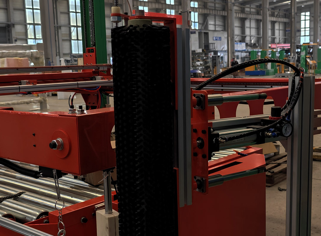 這套設備包括(配套滾筒輸送線、臥式自動捆扎機、立式自動捆扎機、旋臂在線托盤包裝機等) 工作原理:托盤自動進入定型機,經光電定位后,通過前后左右定型推板設置,對托盤進行五面定型后,定型機的入口門降低,輸出門升高。托盤的輸出。由于采用五面成型,托盤不歪斜,貨物尺寸規整,可配合后續的旋臂在線包裝機進行運輸和儲存。 設備優點:整機采用多功能人機界面觸摸顯示系統,PLC控制。大顯示屏可實時顯示設備運行狀
