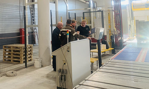 貨物通過前端輸送線居中定位后運送至下壓式加壓穿鍵打包機下面的旋轉平臺上面,穿鍵打包機液壓加壓裝置啟動,機芯下降,同時鍵體運行,機芯到位、鍵體到位后:開始送帶,帶到位后機芯移動電機啟動,運轉完成捆扎。...